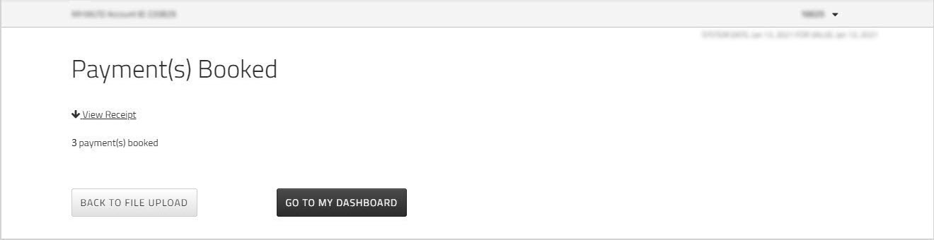 When the STATUS column for an uploaded payments file displays a green check, all the payments in the file have complete information and you can book the payments.